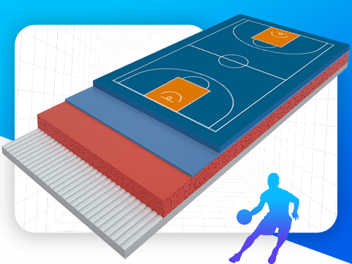 彈性層為聚氨酯底膠材料混合環(huán)保橡膠顆粒刮涂而成,防滑面層為