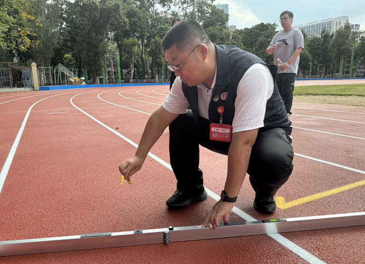 Synthetic running track in Guangzhou Sport University was renovated in September and October, 2023 by Guangzhou Shengbang Sport Field Material Co., Ltd (hereinafter referred to as SSG Sports). The synthetic running track system is full PU system.And the track facility then went through approval process of Chinese Athletics Association Class II certification.