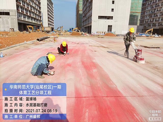 Concrete Base Grinding Before Applying the SPU Sport Floor Material----Basketball Court Area (July 24th 2021)