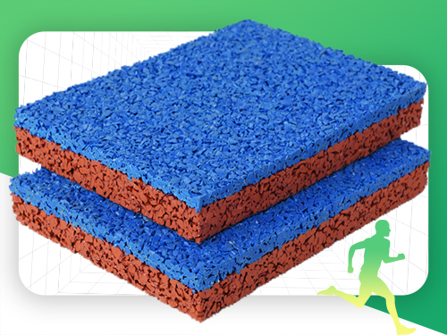 彈性層為聚氨酯底膠材料混合環(huán)保橡膠顆粒刮涂而成,防滑面層為